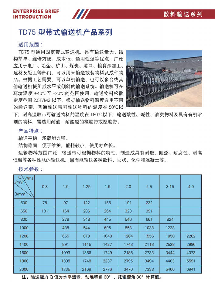 TD75型带式输送机产品系列